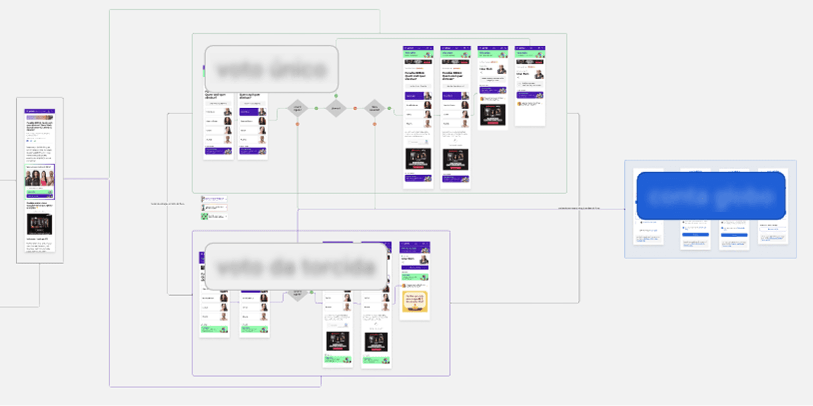 The end-to-end voting experience spanned four different teams, each with its own priorities, roadmaps, and technical ownership. Development and design teams were not previously integrated, requiring alignment across unfamiliar workflows and decision-making processes. Beyond the user-facing experience, the system also needed to support editorial teams responsible for configuring and managing voting setups, adding operational complexity. Extensive documentation was required to enable onboarding and training for a large temporary workforce of over 100 people dedicated exclusively to the season. Additionally, the product handled sensitive personal data (CPF), demanding close collaboration with legal, compliance, and anti-fraud teams. The solution had to anticipate and safely handle extreme edge cases, including CPF validation failures, duplicate voting attempts, system abuse, and potential data security threats.